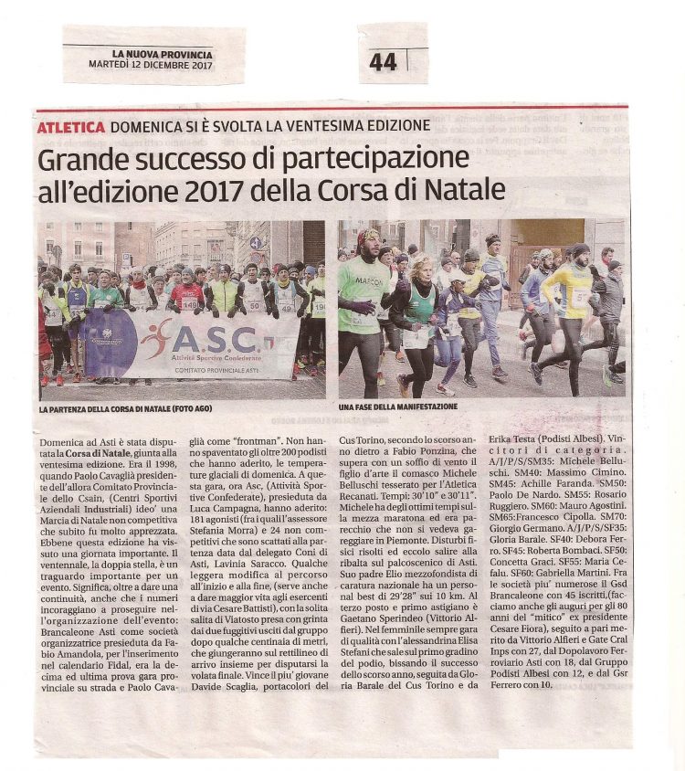 Ventesima Edizione della Corsa di Natale ASC ASTI